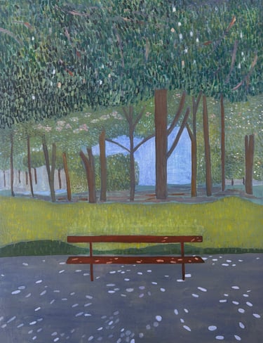 All good, A bench on Place de Vosges, Oil on Canvas, 70x90cm/27.6x35.4in